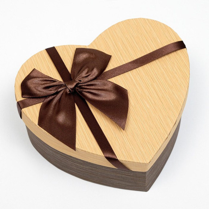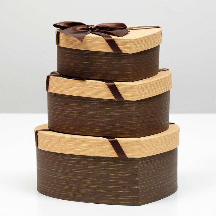 Набор коробок 3 в 1 «Сердце», с бантом, коричневый, 22 х 20 х 9 - 16 х 14 х 6 см