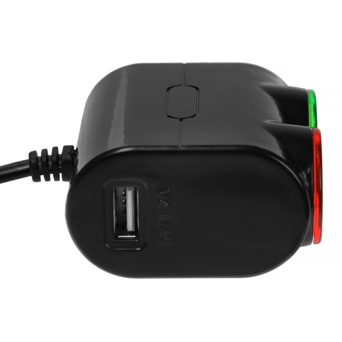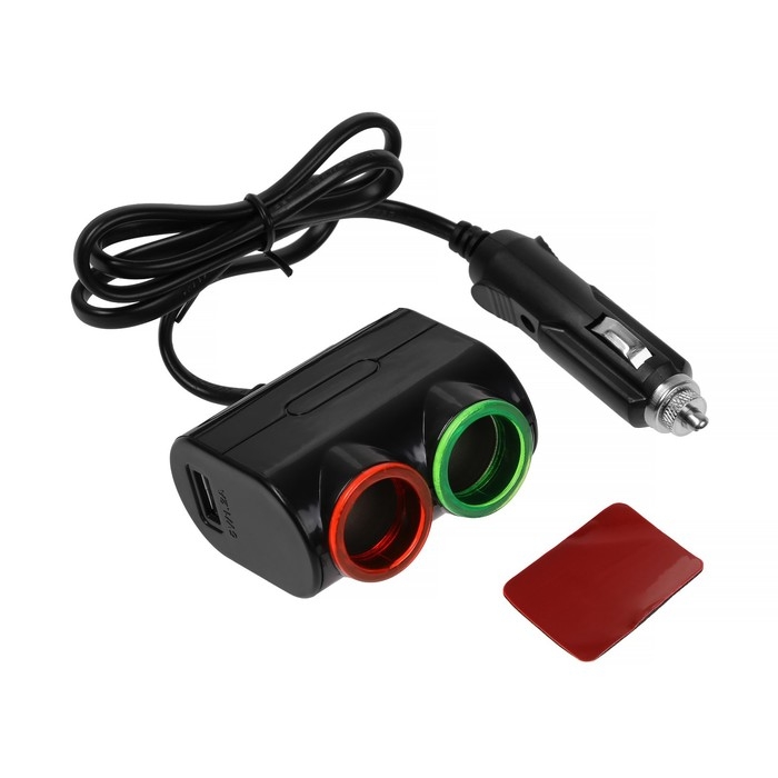 Разветвитель прикуривателя, 3 гнезда, 2 USB 1 А, 60 Вт, 12/24 В, подсветка, провод 70 см