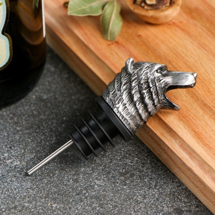 Фигурная крышка для бутылки "Медведь" серебро, 10х3см