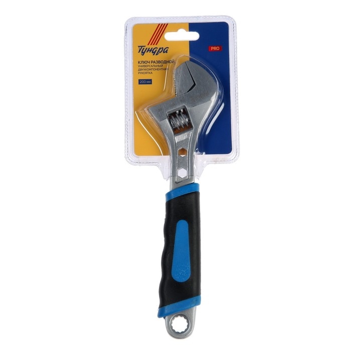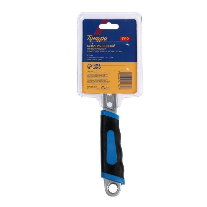 Ключ разводной ТУНДРА ВДОМ, 2 варианта зажима, гайки 4-6-12 мм, 2К рукоятка, 200 мм