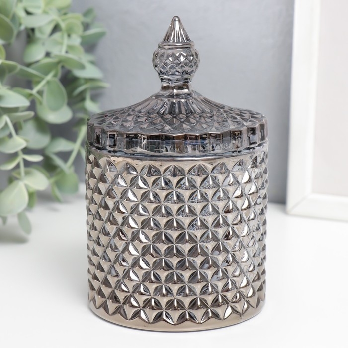 Шкатулка стекло "Ромбы и купол" серый 14х8,2х8,2 см