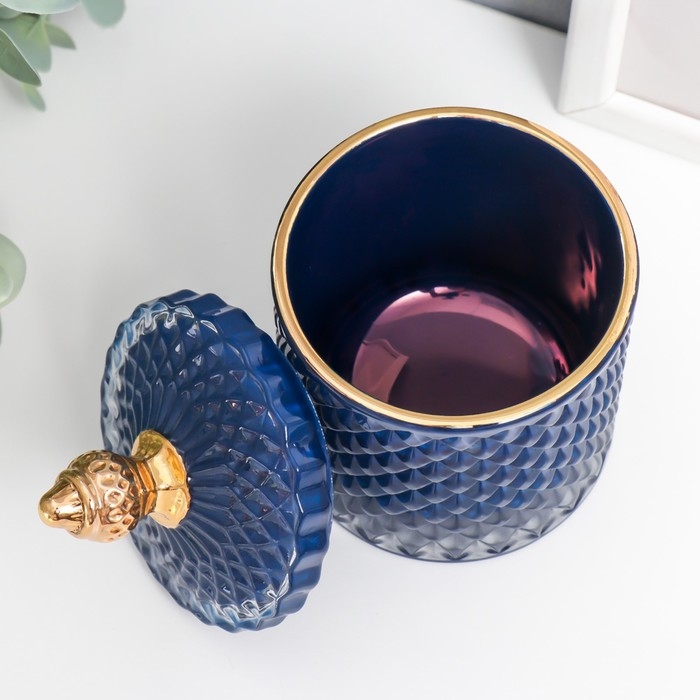 Шкатулка стекло "Ромбы и купол" тёмно-синий с золотом 14х8,2х8,2 см