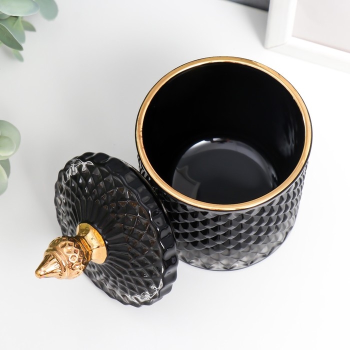 Шкатулка стекло "Ромбы и купол" чёрный с золотом 14х8,2х8,2 см