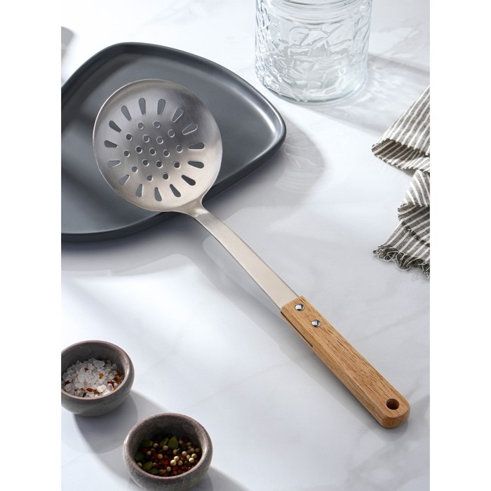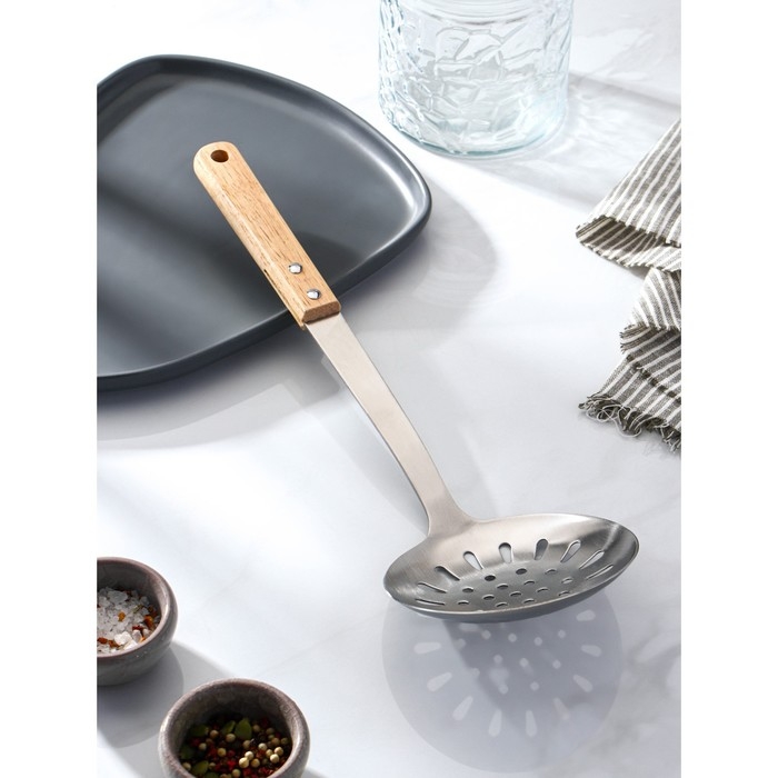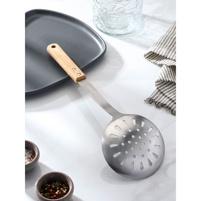 Шумовка из нержавеющей стали Доляна «Стандарт», h=32 см, цвет серебряный