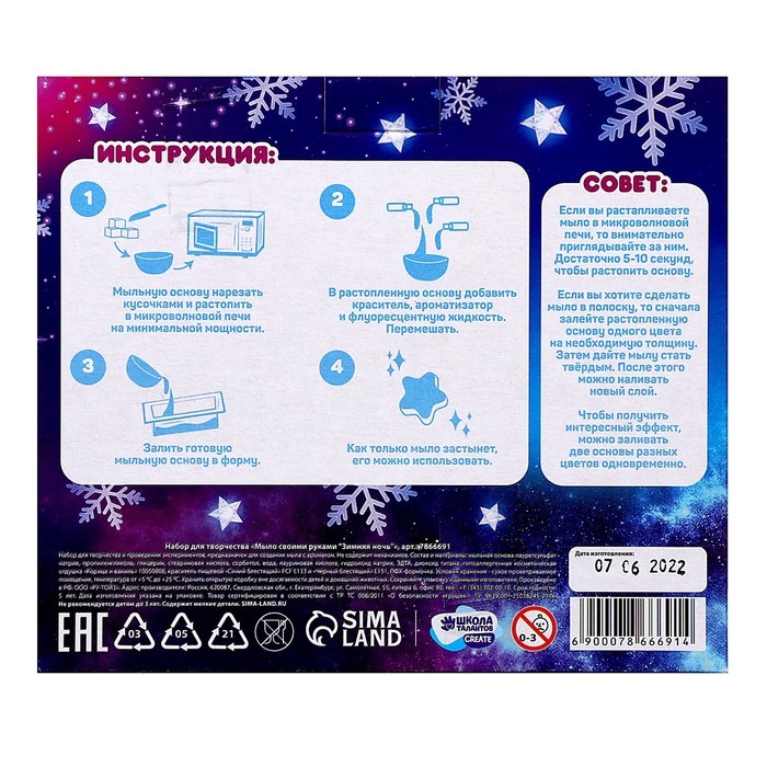Мыло своими руками на новый год «Зимняя ночь», 2 формы, новогодний набор для творчества
