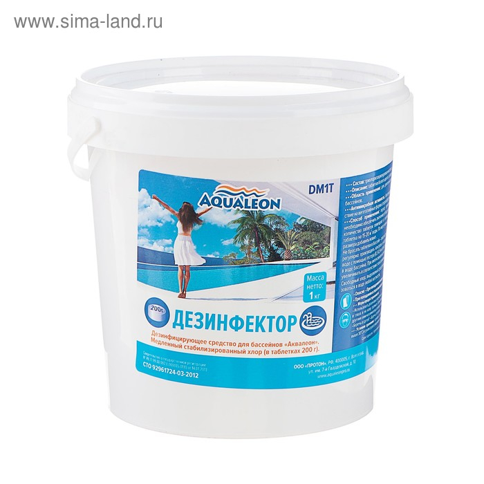 Медленный стабилизированный хлор Aqualeon, таблетки по 200 г, 1 кг