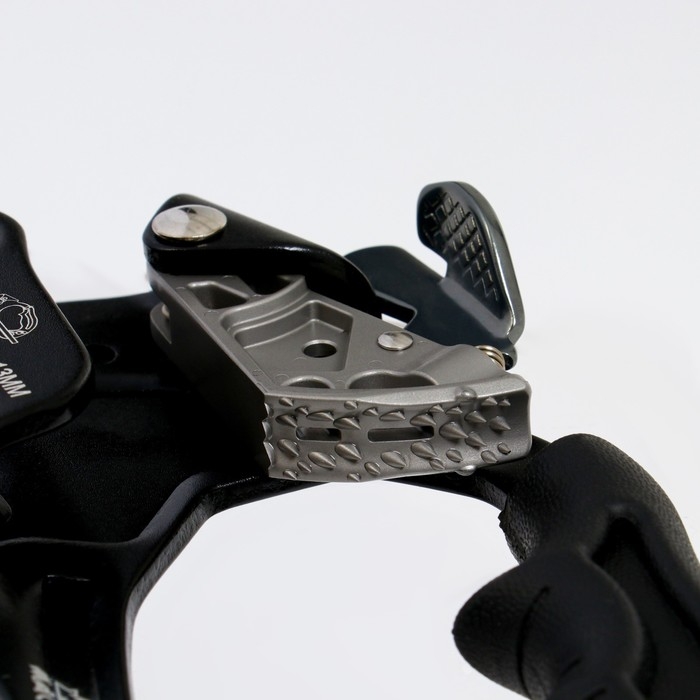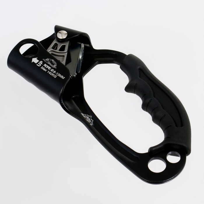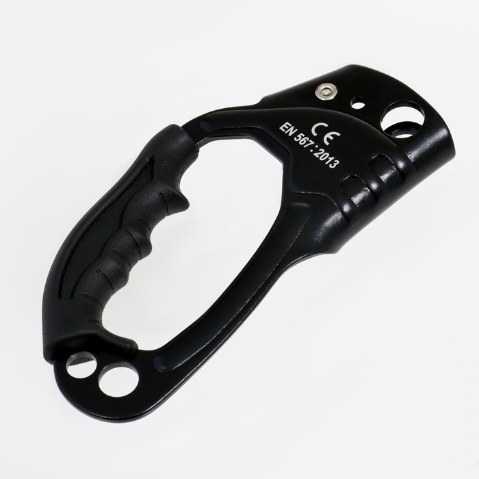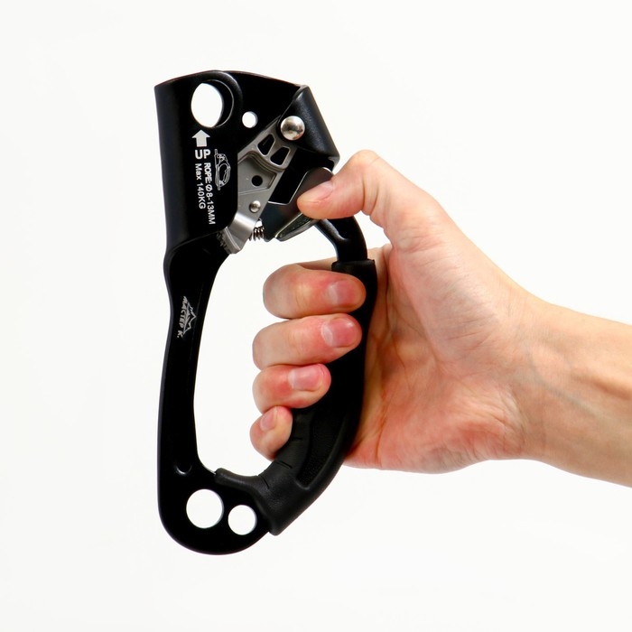 Жумар (или зажим) необходим для подъема по вертикальным или наклонным перилам. Он достаточно прост в использовании – представляет собой зажим, двигающийся вверх. А вот движение вниз на нем блокирует специальный кулачок с шипами, который при тяге упирается в веревку.
