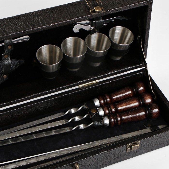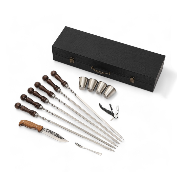 Набор с шампурами подарочный "Сокол" в кейсе из эко-кожи №26