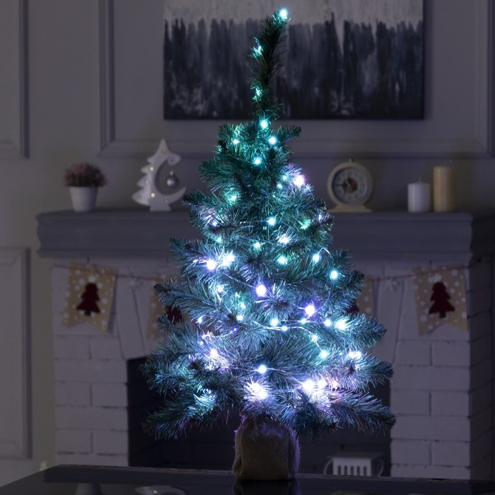 Гирлянда «Мишура» 2 м роса, IP20, серебристая нить, 100 LED, свечение мульти, USB