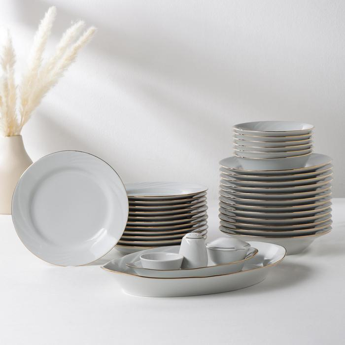 Сервиз столовый фарфоровый «Голубка. Классик», 36 предметов, 2 вида тарелок, деколь и отводка люстром