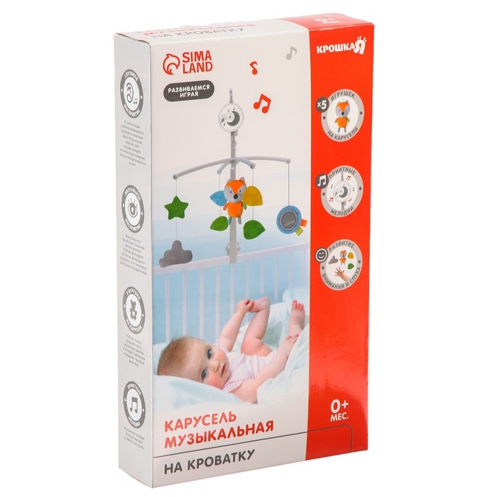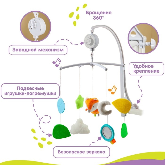 Мобиль музыкальный на кроватку «Лисенок», заводной, мягкие игрушки, Крошка Я
