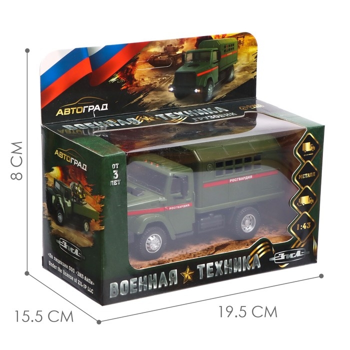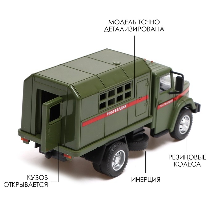 Грузовик металлический «ЗИЛ «Росгвардия», инерция, масштаб 1:43, подвижные детали кузова