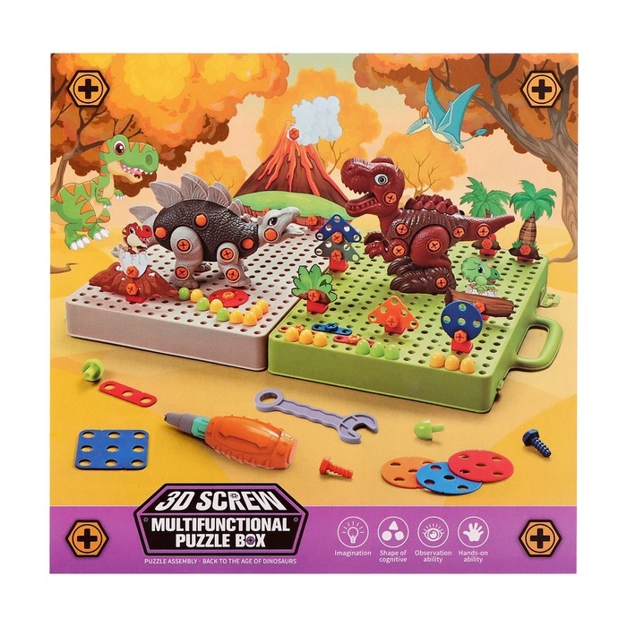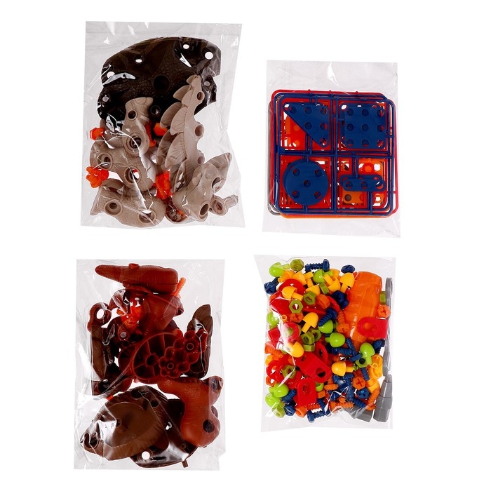 Конструктор винтовая мозаика «Диномир», с электрическим шуруповёртом, 217 деталей