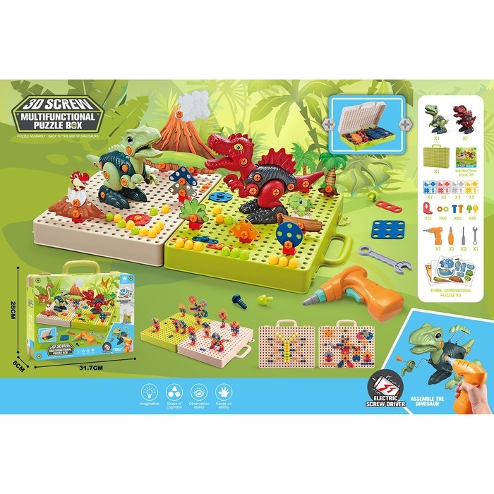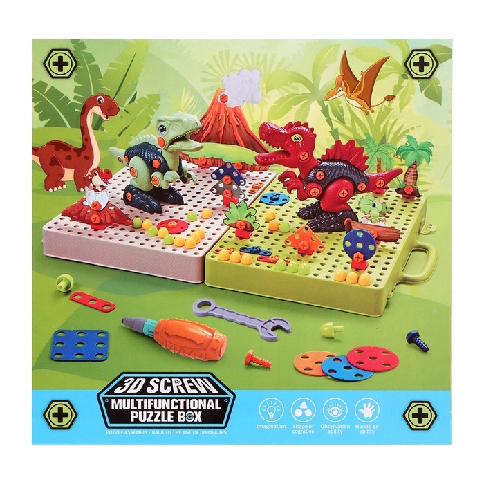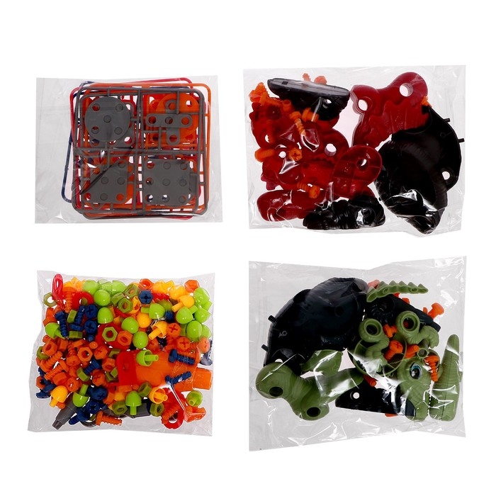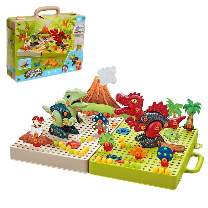 Конструктор винтовая мозаика «Диномир», с электрическим шуруповёртом, 212 деталей