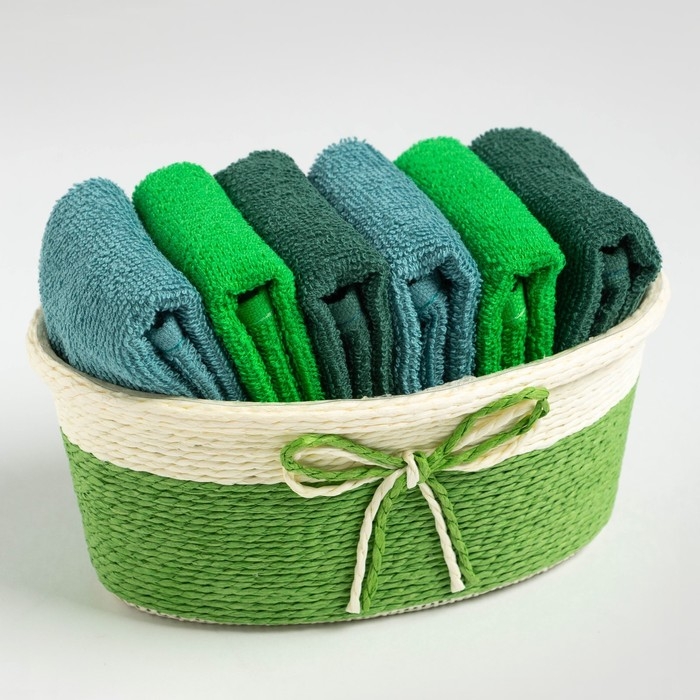 Набор махровых декоративных салфеток Этель, 30х30см-6шт, цвет зелёный, 100% хлопок