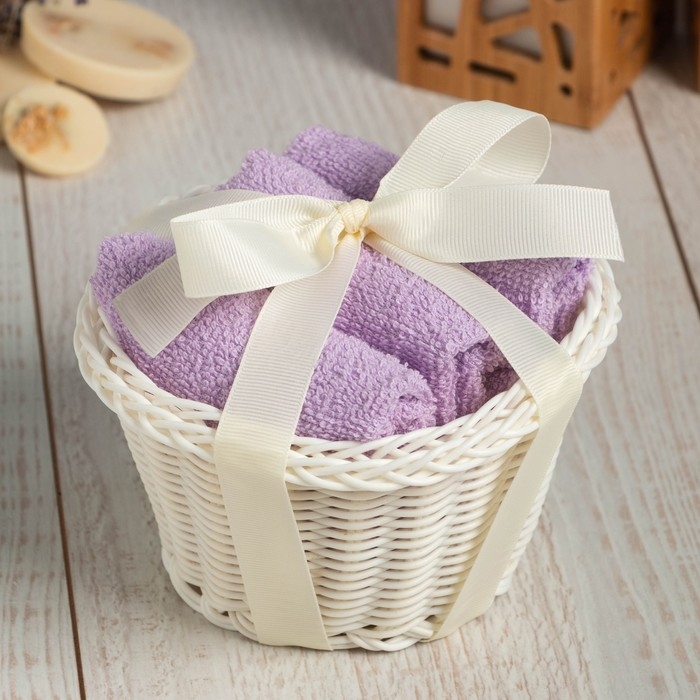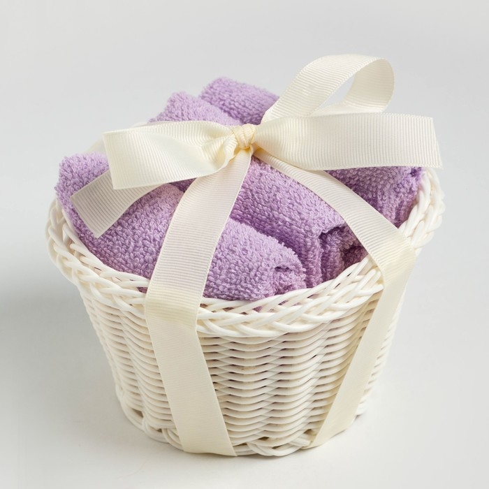 Набор махровых декоративных салфеток Этель "Вид 1" 30х30см-3шт, цвет сиреневый, 100% хлопок