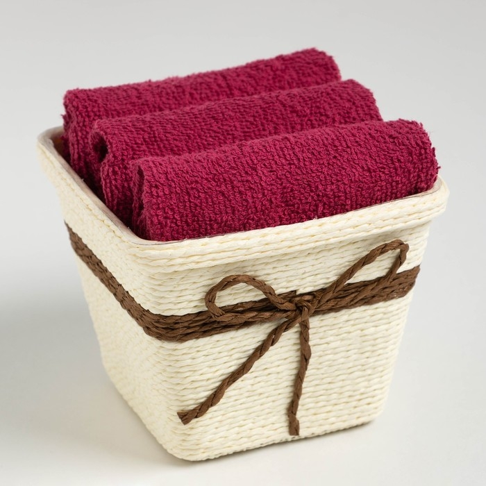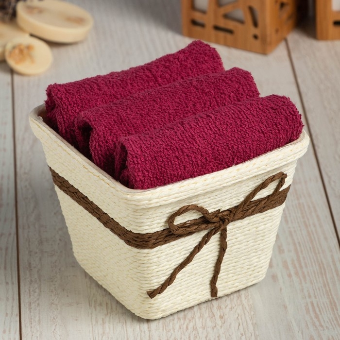Набор махровых декоративных салфеток Этель "Вид 2" 30х30см-3шт, цвет бордовый, 100% хлопок