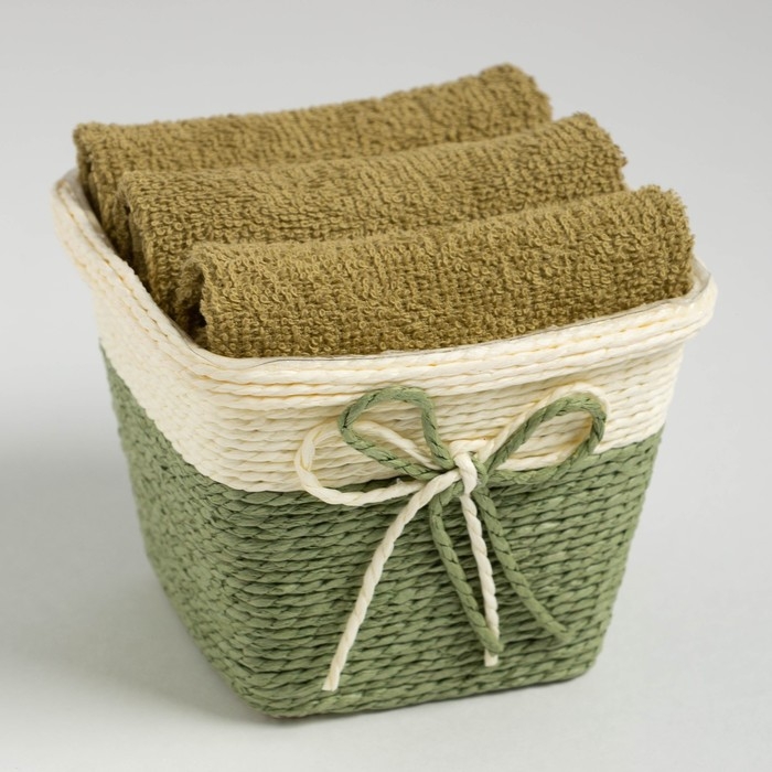 Набор махровых декоративных салфеток Этель "Вид 2" 30х30см-3шт, цвет зелёный, 100% хлопок