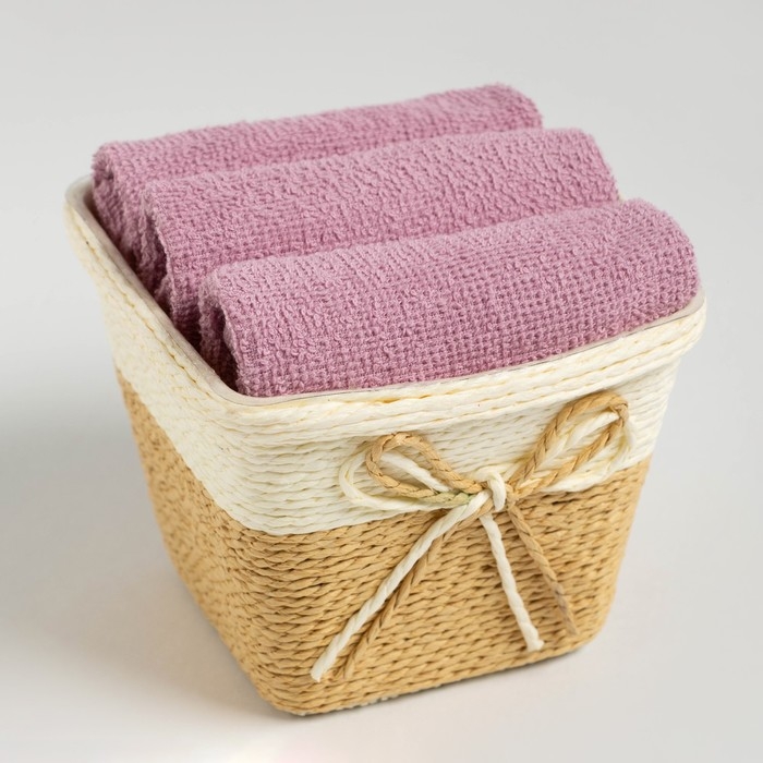 Набор махровых декоративных салфеток Этель "Вид 2" 30х30см-3шт, цвет розовый, 100% хлопок