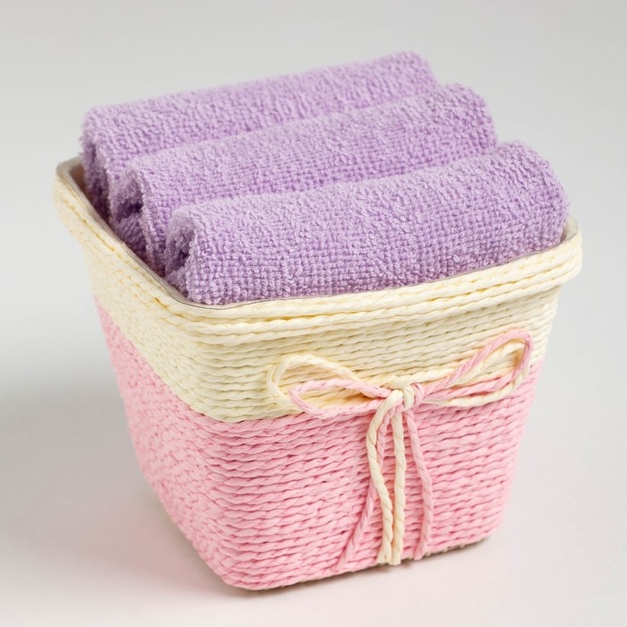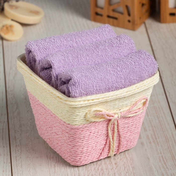 Набор махровых декоративных салфеток Этель "Вид 2" 30х30см-3шт, цвет сиреневый, 100% хлопок