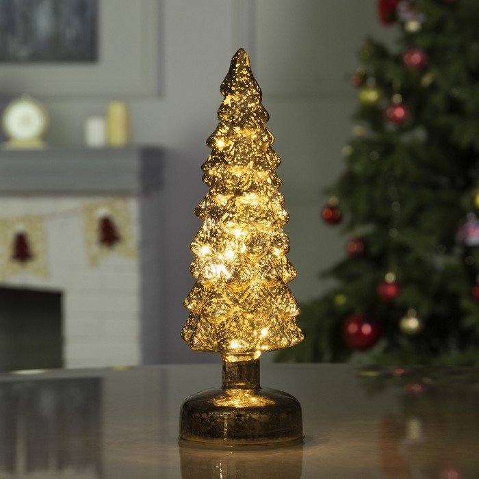 Светодиодная фигура «Золотистая ёлка» 9 × 29 × 9 см, стекло, батарейки АААх3 (не в комплекте), свечение тёплое белое