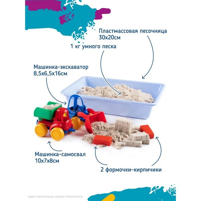 Сыграйте в стройку с умным песком! Он приятный на ощупь и хорошо держит форму, не застывает на воздухе и не липнет. Поможет весело провести время детям разного возраста.