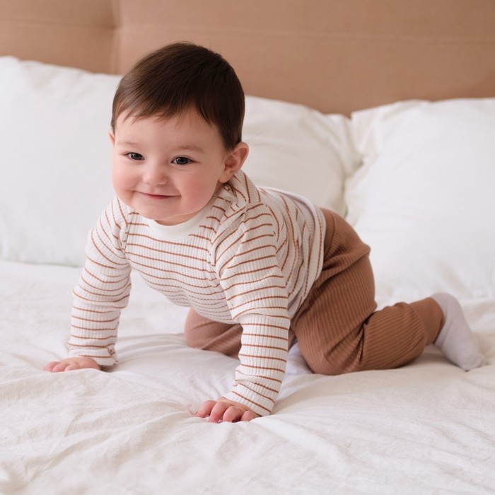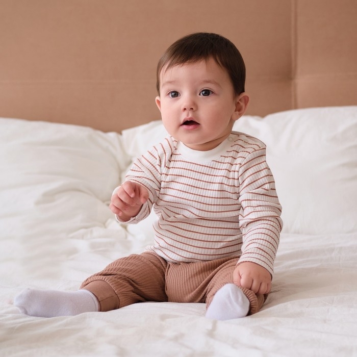 Лонгслив детский Крошка Я, BASIC LINE, рост 74-80 см, полоска бежевая