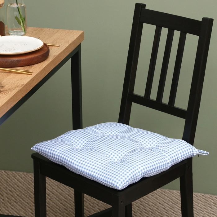 Сидушка на стул Этель "Клеточка" 40х40 см, цв. синий, 100% полиэстер