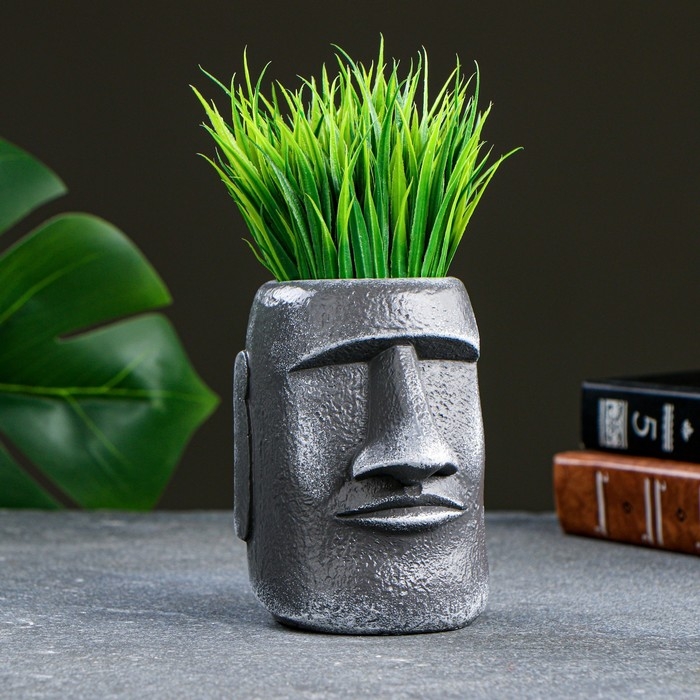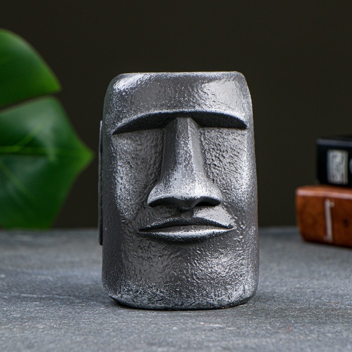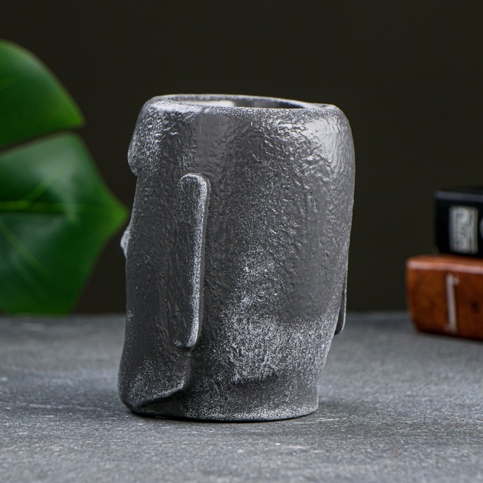 Кашпо - органайзер "Истукан моаи крупный" серый камень, 11см