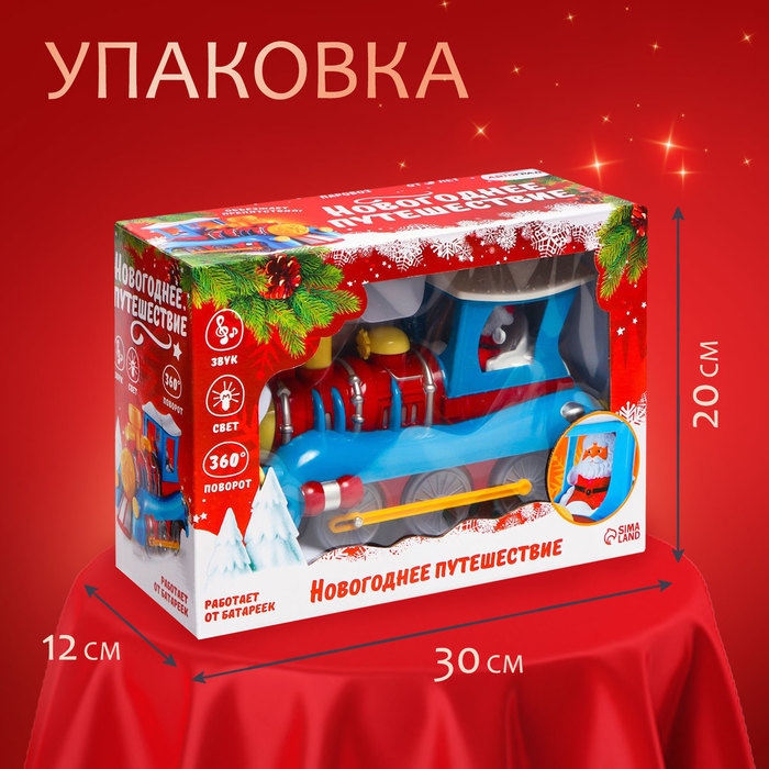 Паровоз «Новогоднее путешествие», работает от батареек, свет и звук