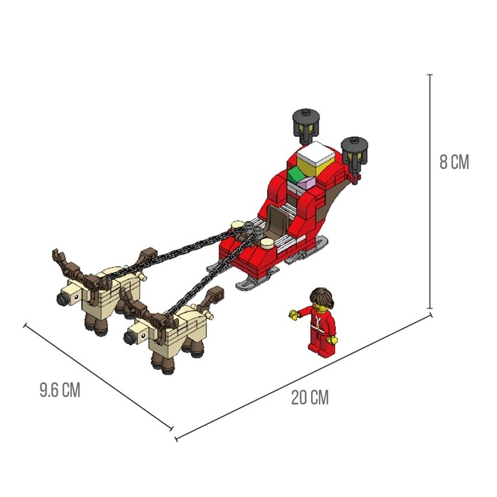 - Игровой набор содержит 142 детали. Из них ребёнок соберёт двух оленей и сани Деда Мороза.