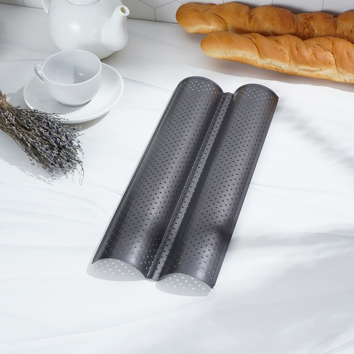 Форма для выпечки перфорированная Доляна «Хлеб. Багет», 38×16,5×2,5 см, антипригарное покрытие