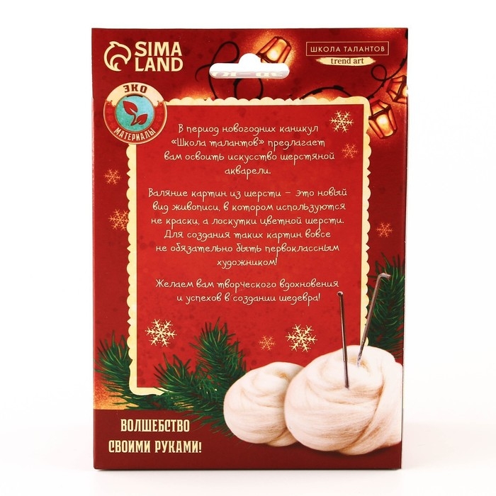 Валяние из шерсти на новый год. Живопись шерстью «Милая лисичка», А5, новогодний набор для творчества