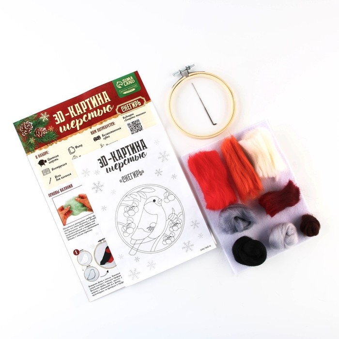 Данный вид творчества основан на валянии. Никогда не слышали о такой технике? Это не проблема: создать мягкое и пушистое панно вам помогут подробные инструкции и видео-мастер-класс, входящие в набор.