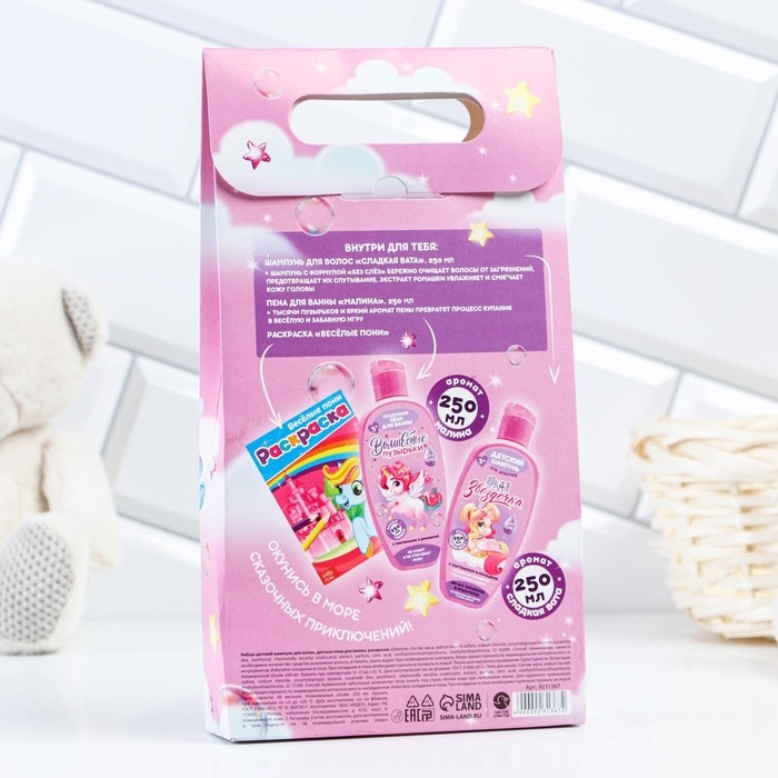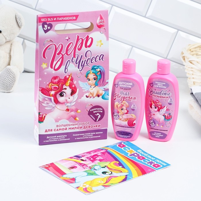 Подарочный набор косметики детский «Верь в чудеса», шампунь для волос и пена для ванны, 2 х 250 мл, раскраска, ЧИСТОЕ СЧАСТЬЕ