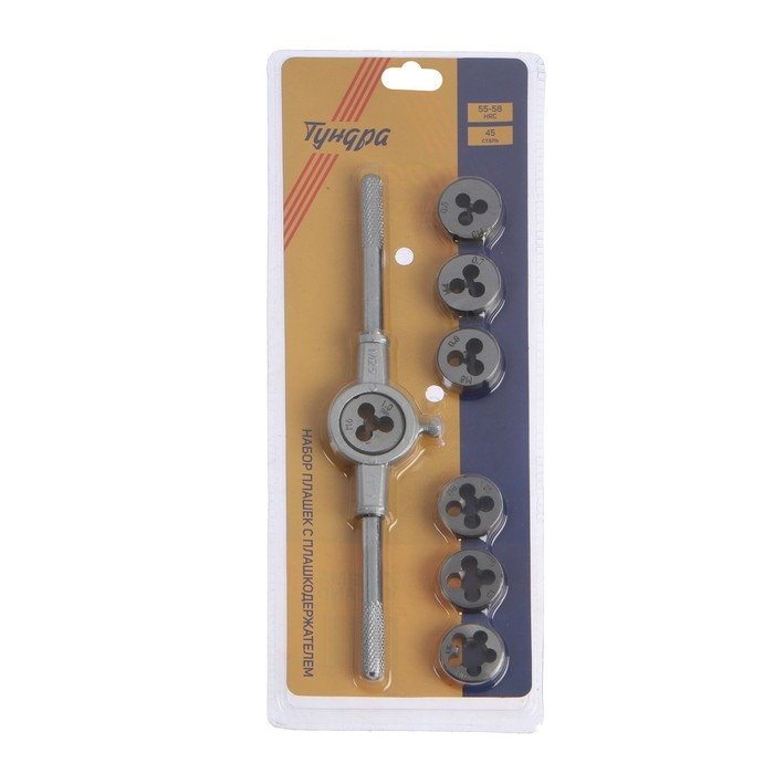Набор плашек ТУНДРА, М3 - М12 + плашкодержатель, 8 предметов