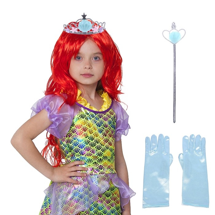 Карнавальный набор «Принцесса-русалка», корона, перчатки, жезл, парик