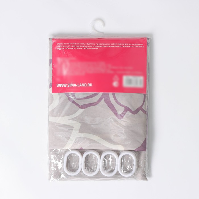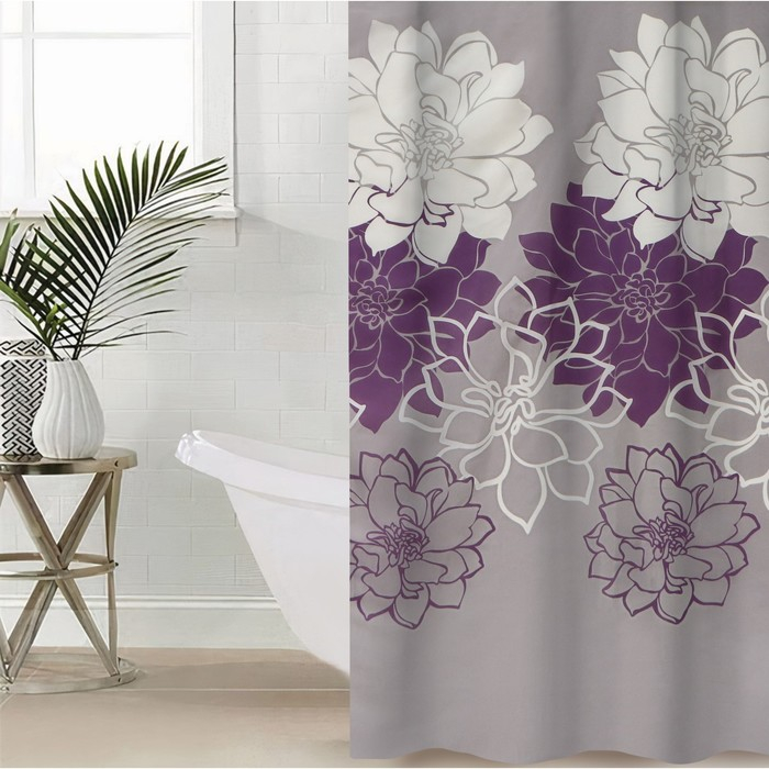 Штора для ванны Доляна «Большие цветы», 180×180 см, полиэстер, цвет сиреневый