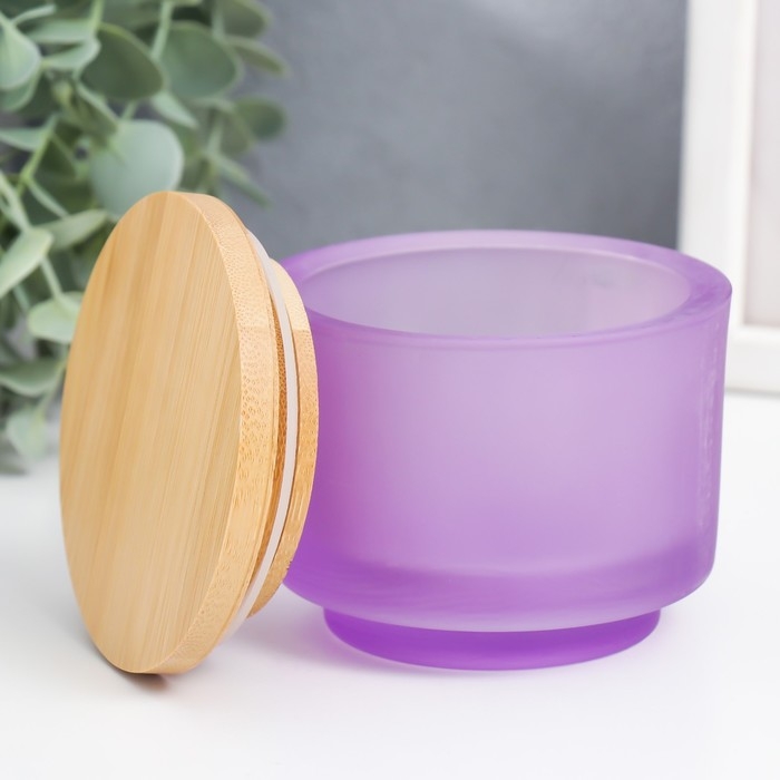 Банка для свечей стекло с крышкой "Сиреневый" на ножке 7,6х9х9 см