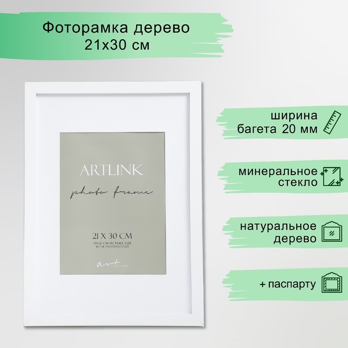 Фоторамка МДФ "Ellis" 21x30 см, с паспарту, белый