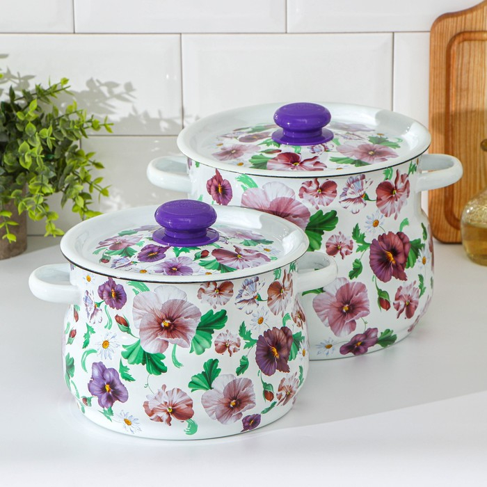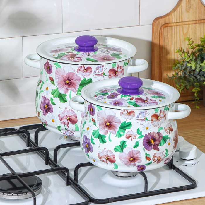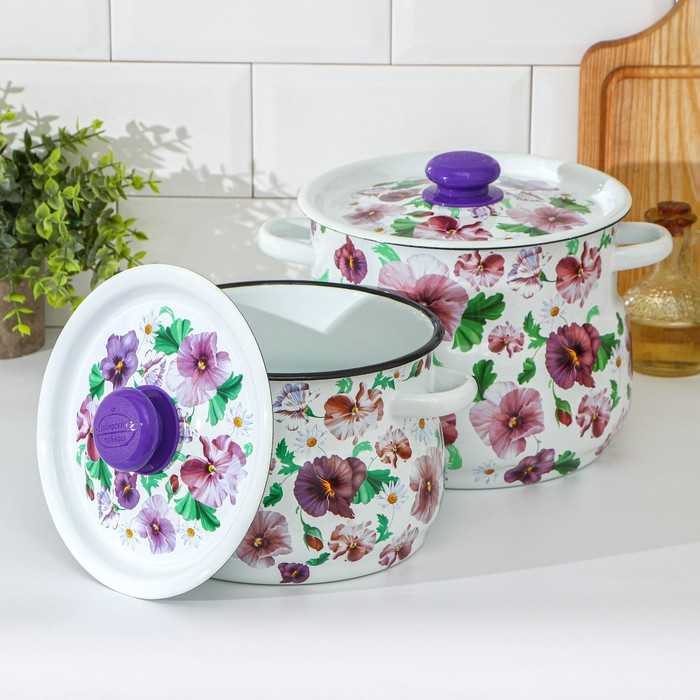 Набор кастрюль «Анютины глазки», 2 предмета: 4 л, 5.5 л, индукция