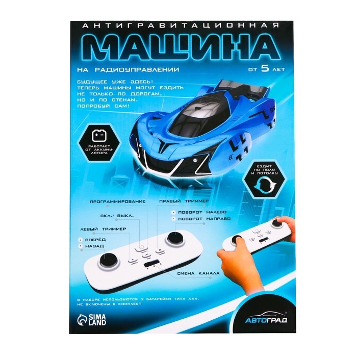 Антигравитационная машинка AIR, радиоуправление, ездит по стенам, аккумулятора, цвет синий