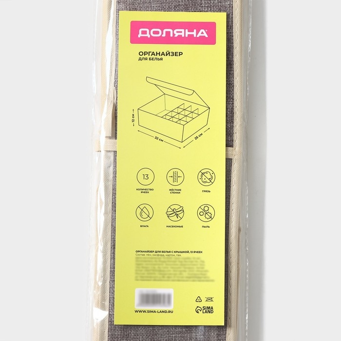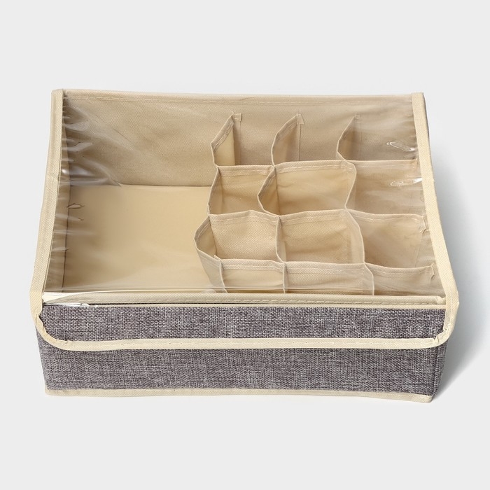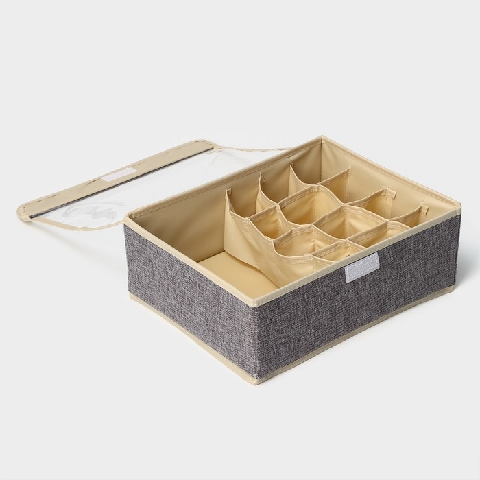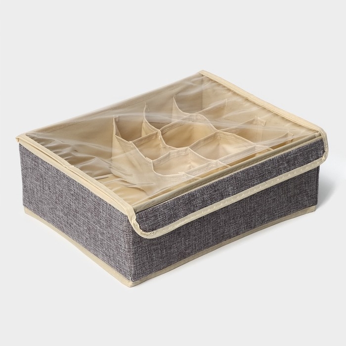 Органайзер для хранения белья Доляна «Тео», 13 ячеек, с прозрачной крышкой, 32×23×12 см, цвет серый