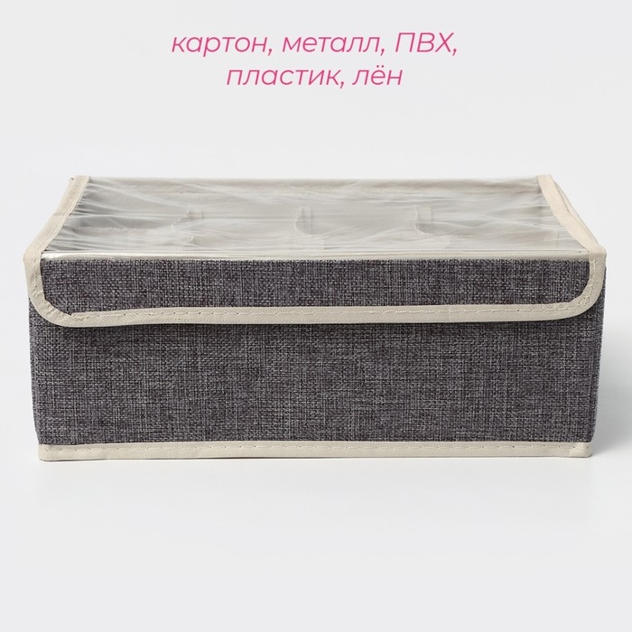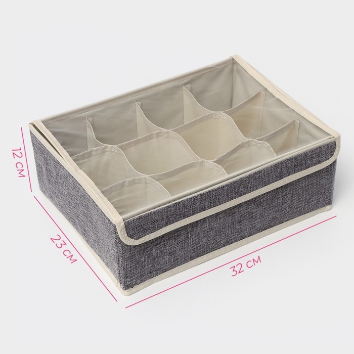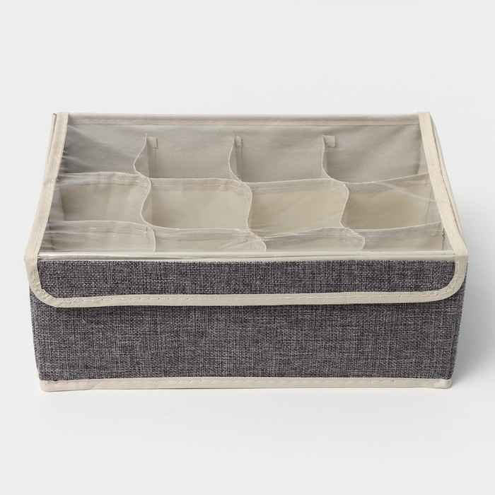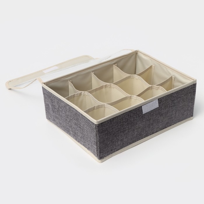 Органайзер для хранения белья Доляна «Тео», 12 ячеек, с прозрачной крышкой, 32×23×12 см, цвет серый