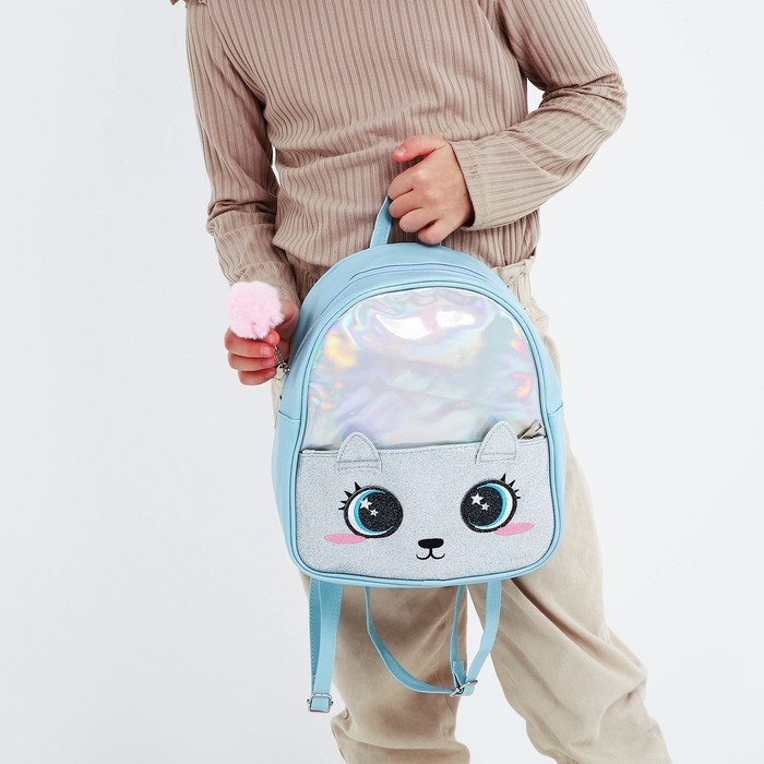 Рюкзак детский для девочки с блестящим карманом «Котенок», 27х23х10 см