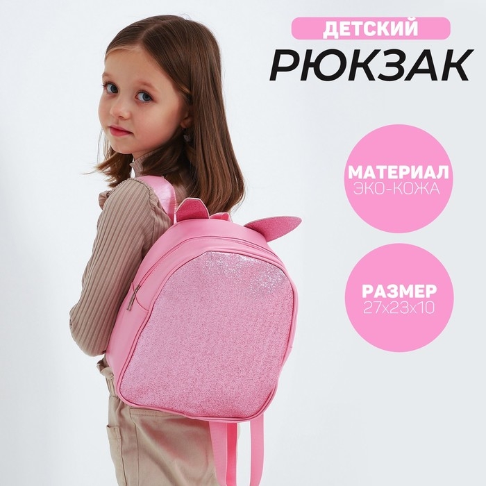 Рюкзак детский для девочки с блестками «Зайка», съемные элементы, 27х23х10 см