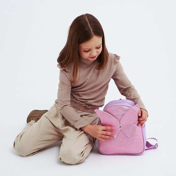 Рюкзак детский для девочки с блестками «Бабочка», съемные элементы, 27х23х10 см