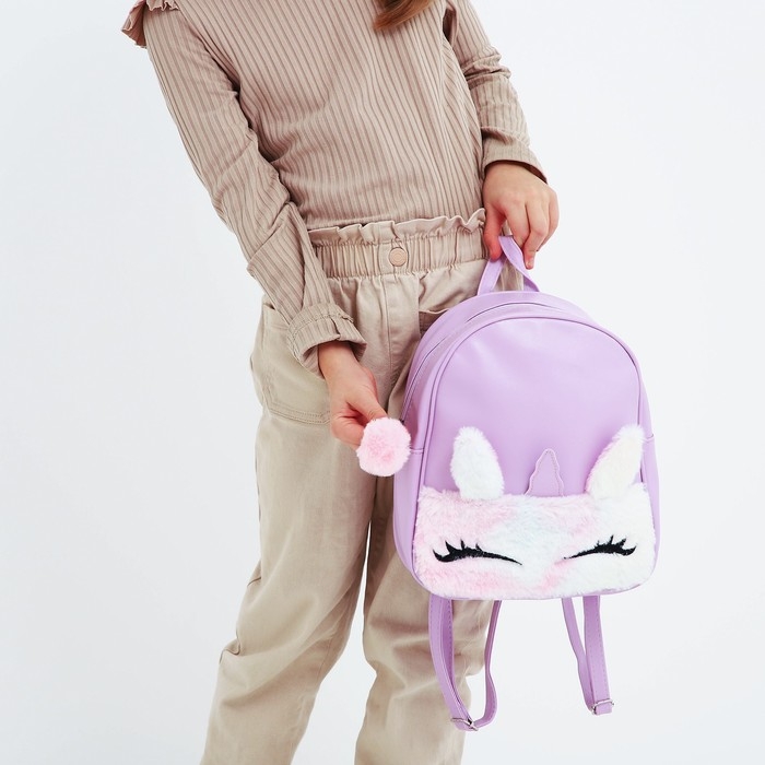 Рюкзак из искусственной кожи «Единорог», с карманом из плюша, 27х23 х 10 см