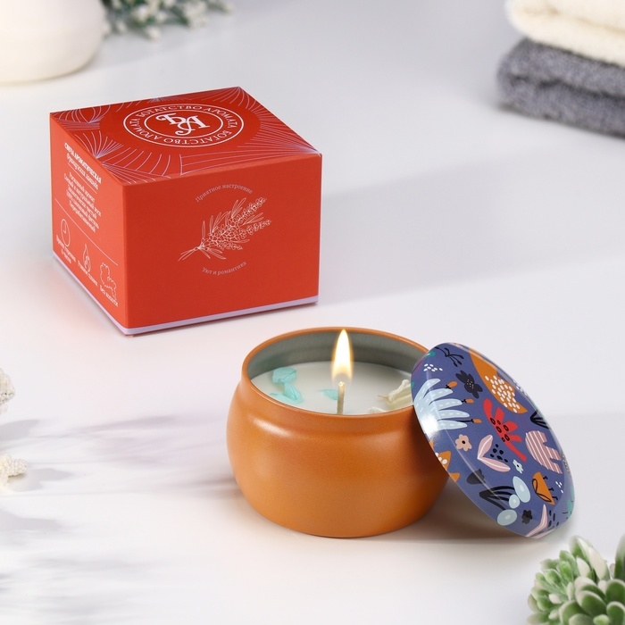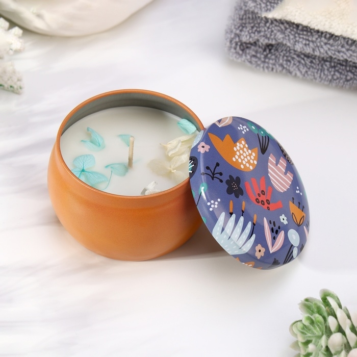 Свеча ароматическая из соевого воска с сухоцветом "Голубые колокольчики", 4,5х6 см, 80 г
