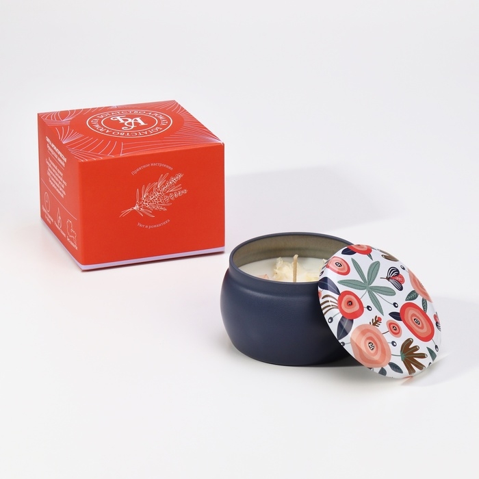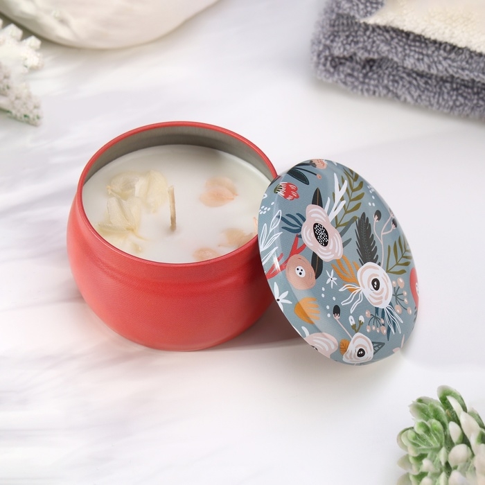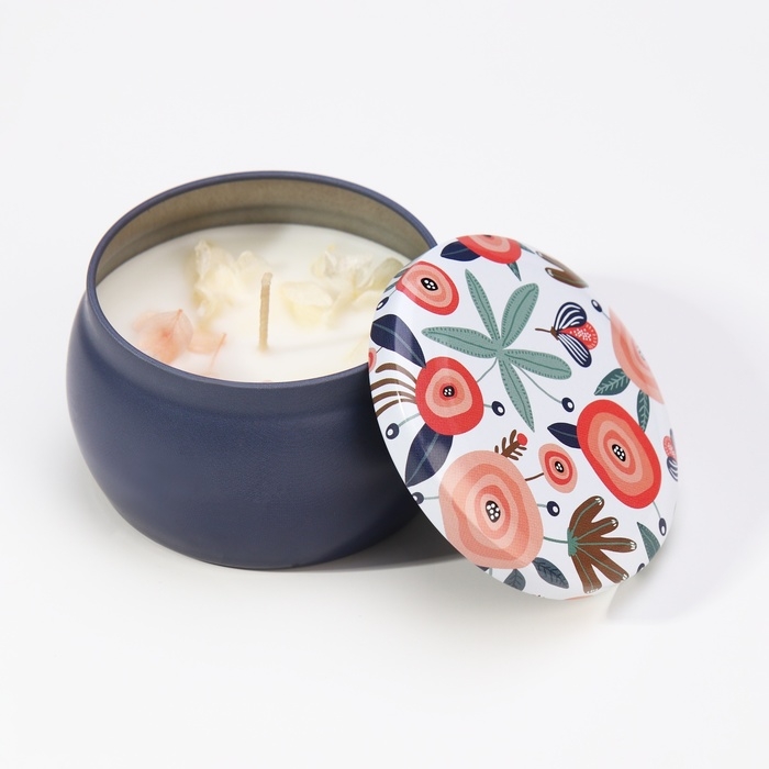 Свеча ароматическая из соевого воска с сухоцветом "Гардения" 4,5х6 см, 80 г